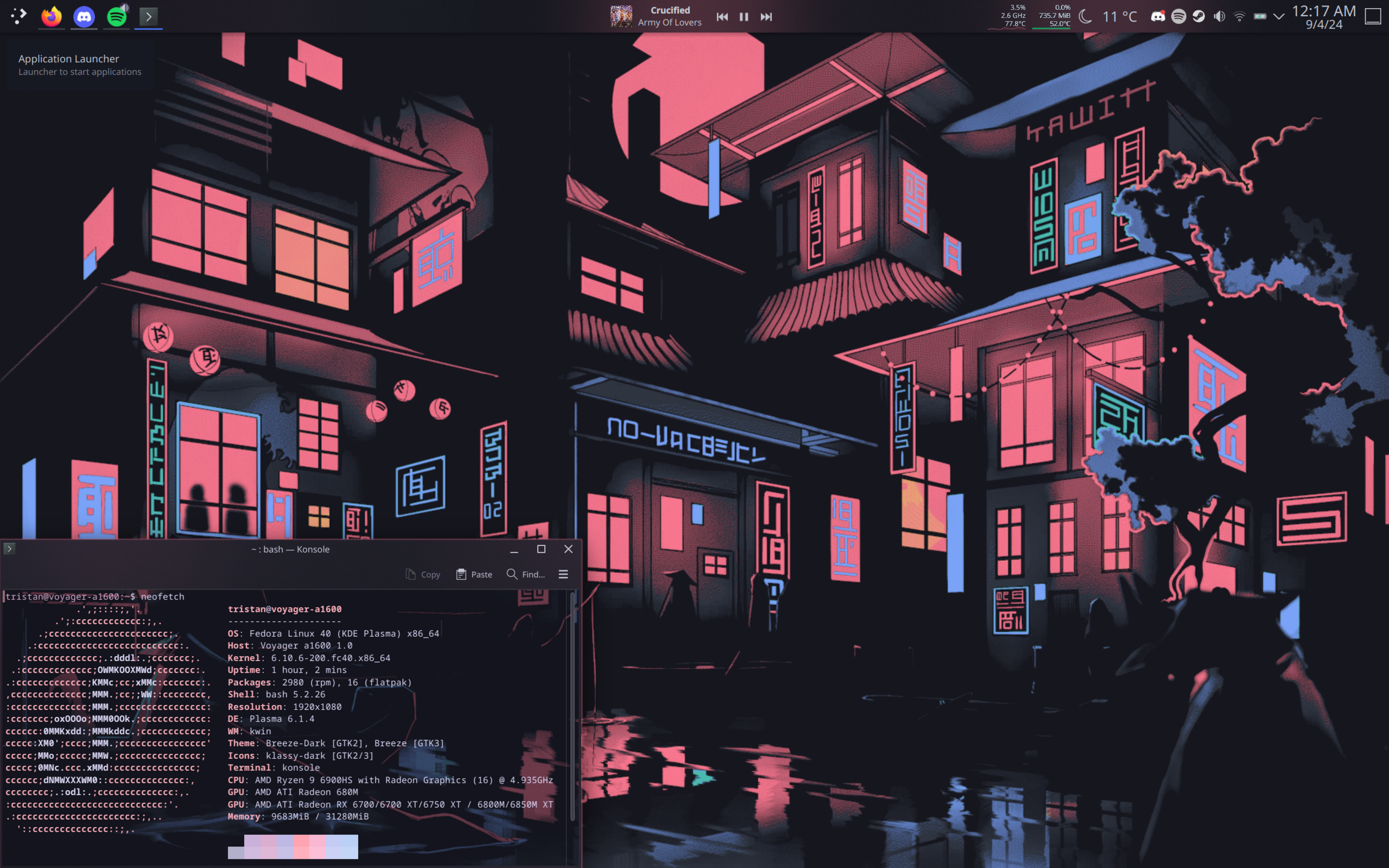Below is an image of my Fedora Linux desktop and my current Windows 11 Desktop.
